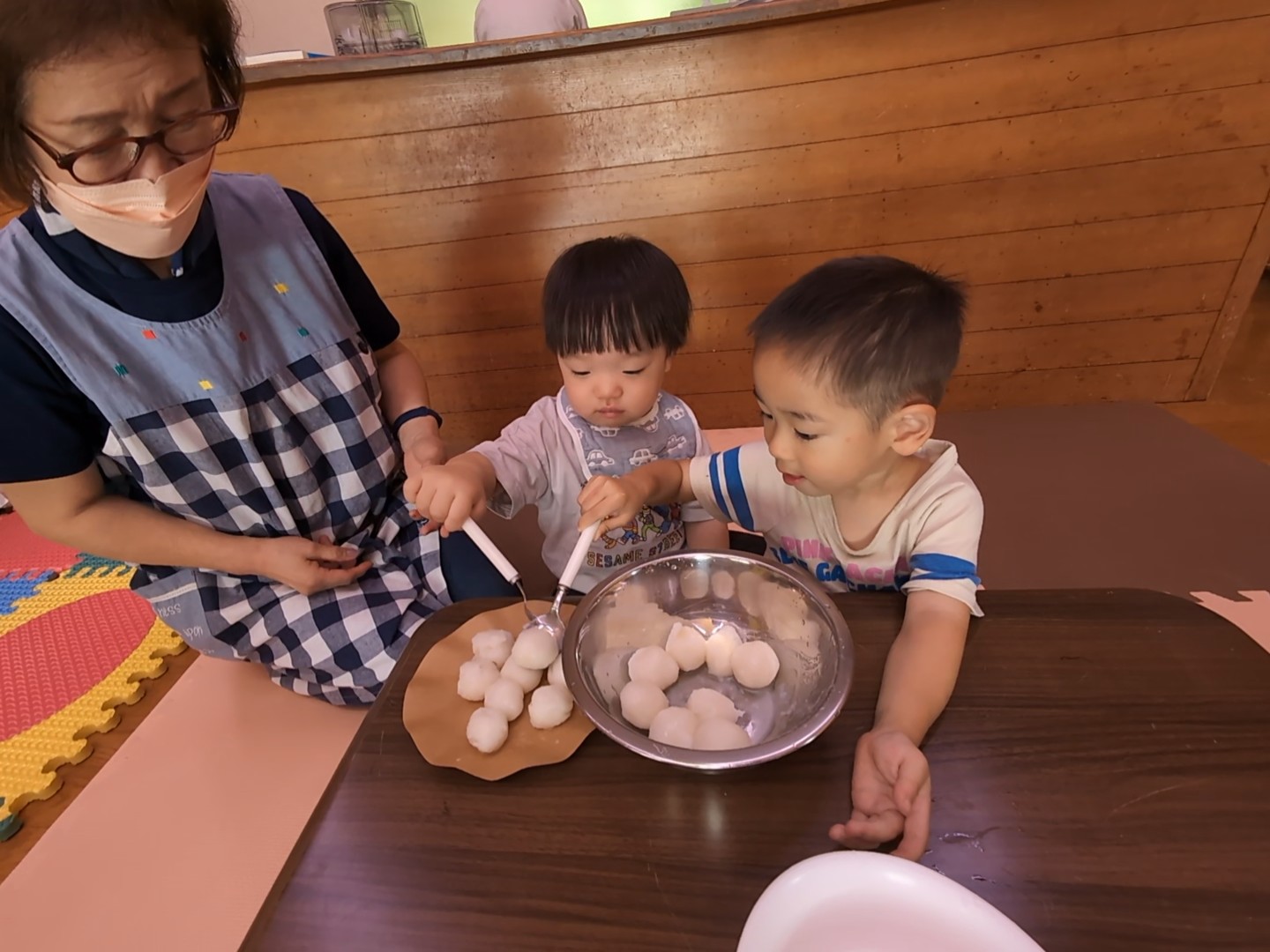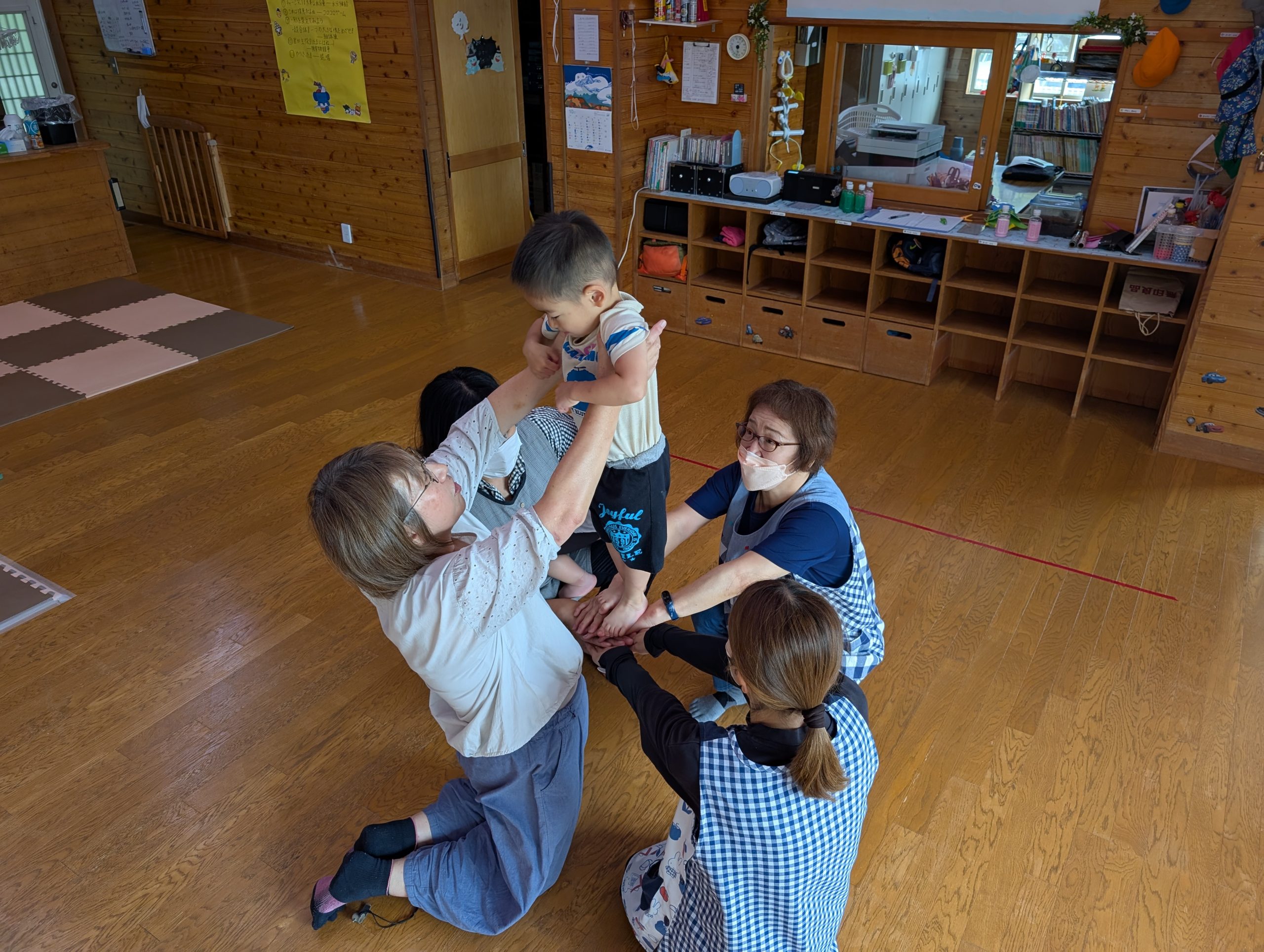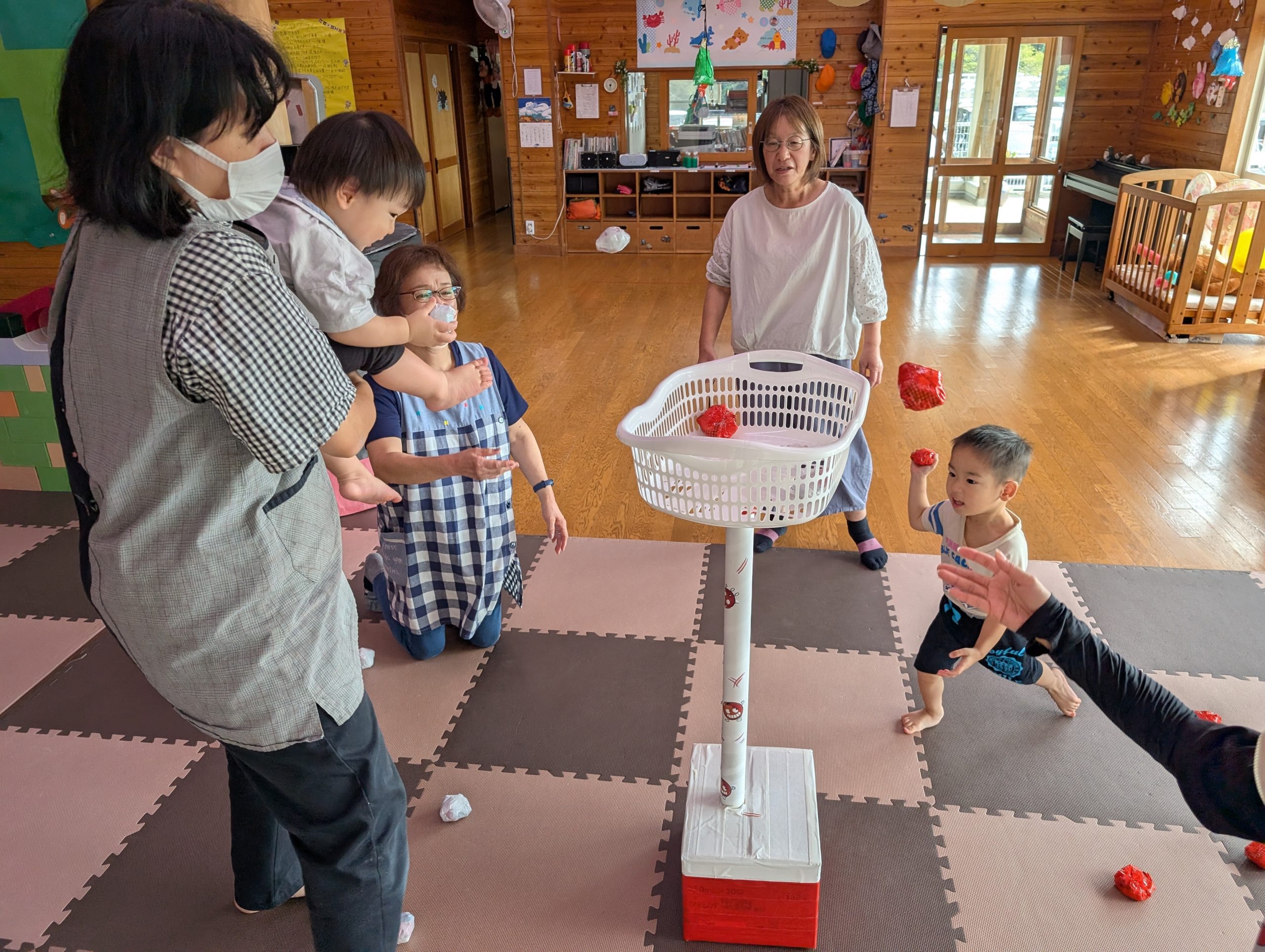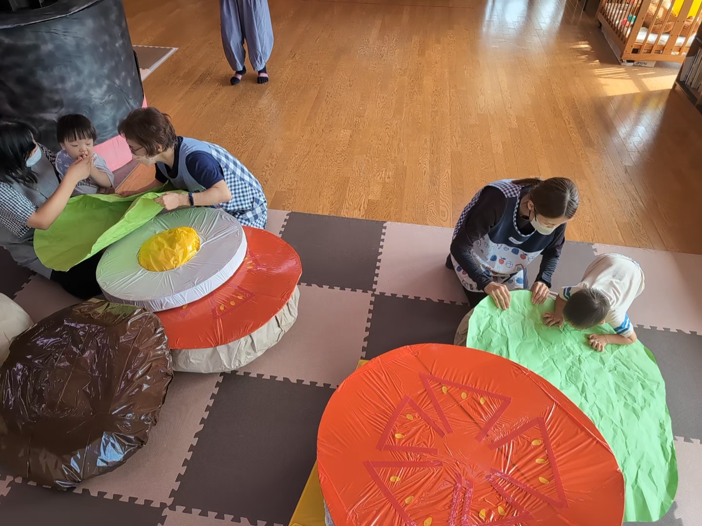 お月見運動会 【行 事】2025.10.07 10月6日は中秋の名月でした。 託児所では、お月見運動会が開催されました。 子どもたちがお団子になり、いろいろと形を変えながらリレーや玉入れなどをしました。 楽しいお月見と運動会になりました。
