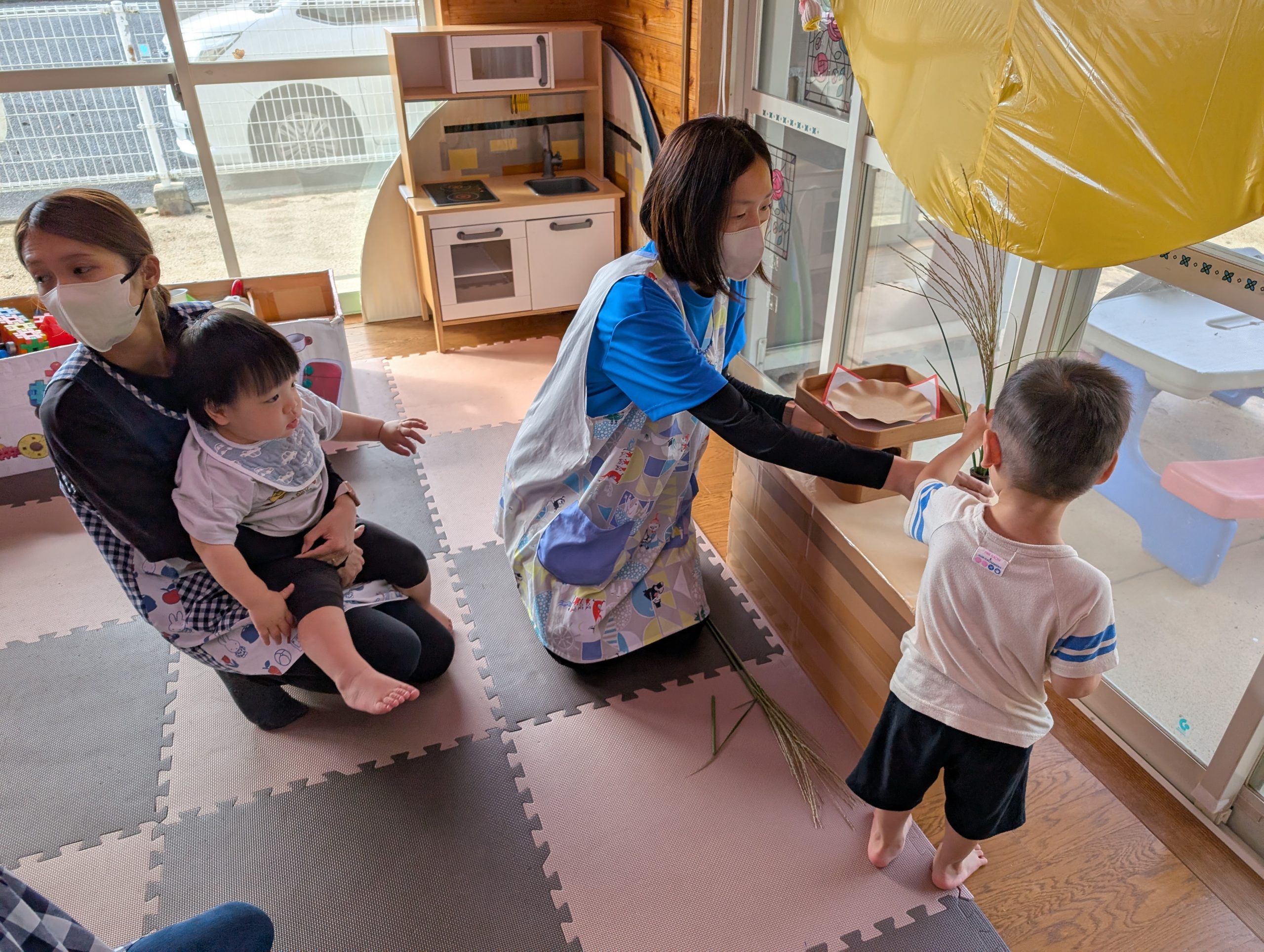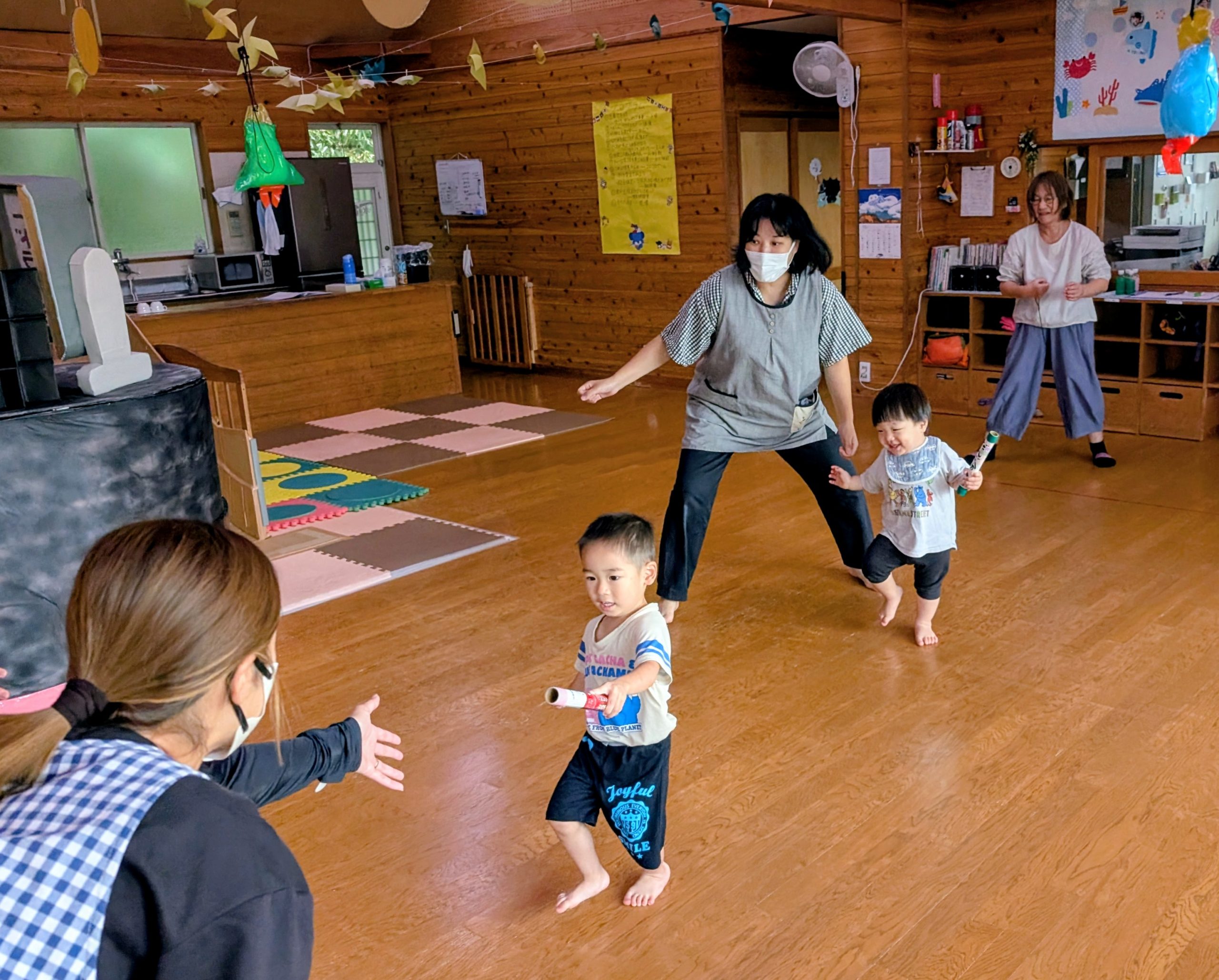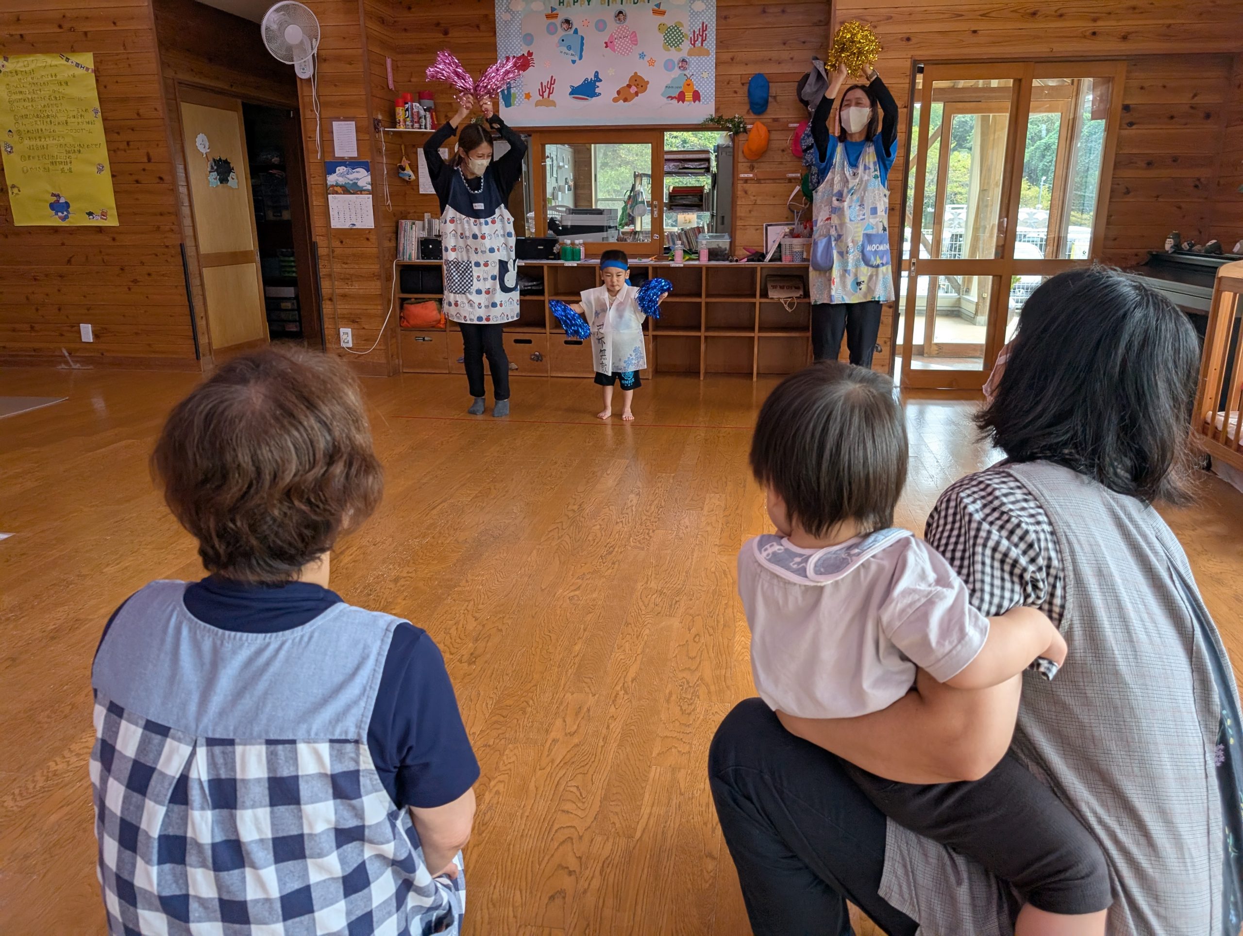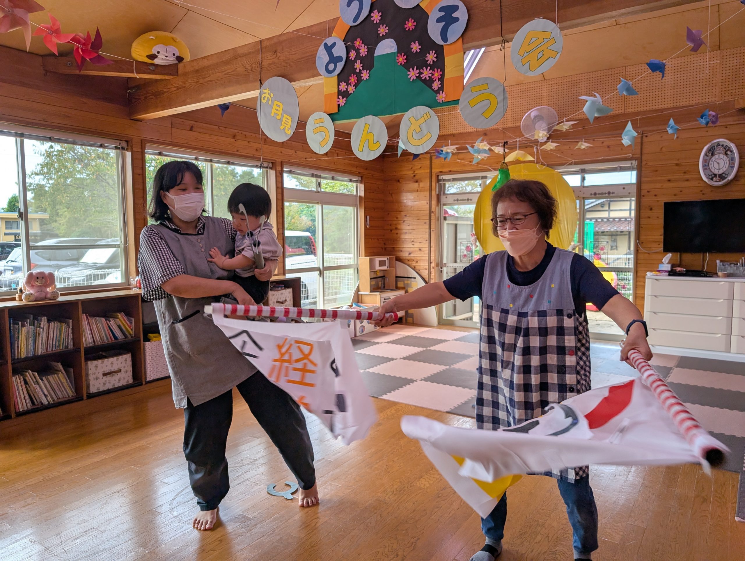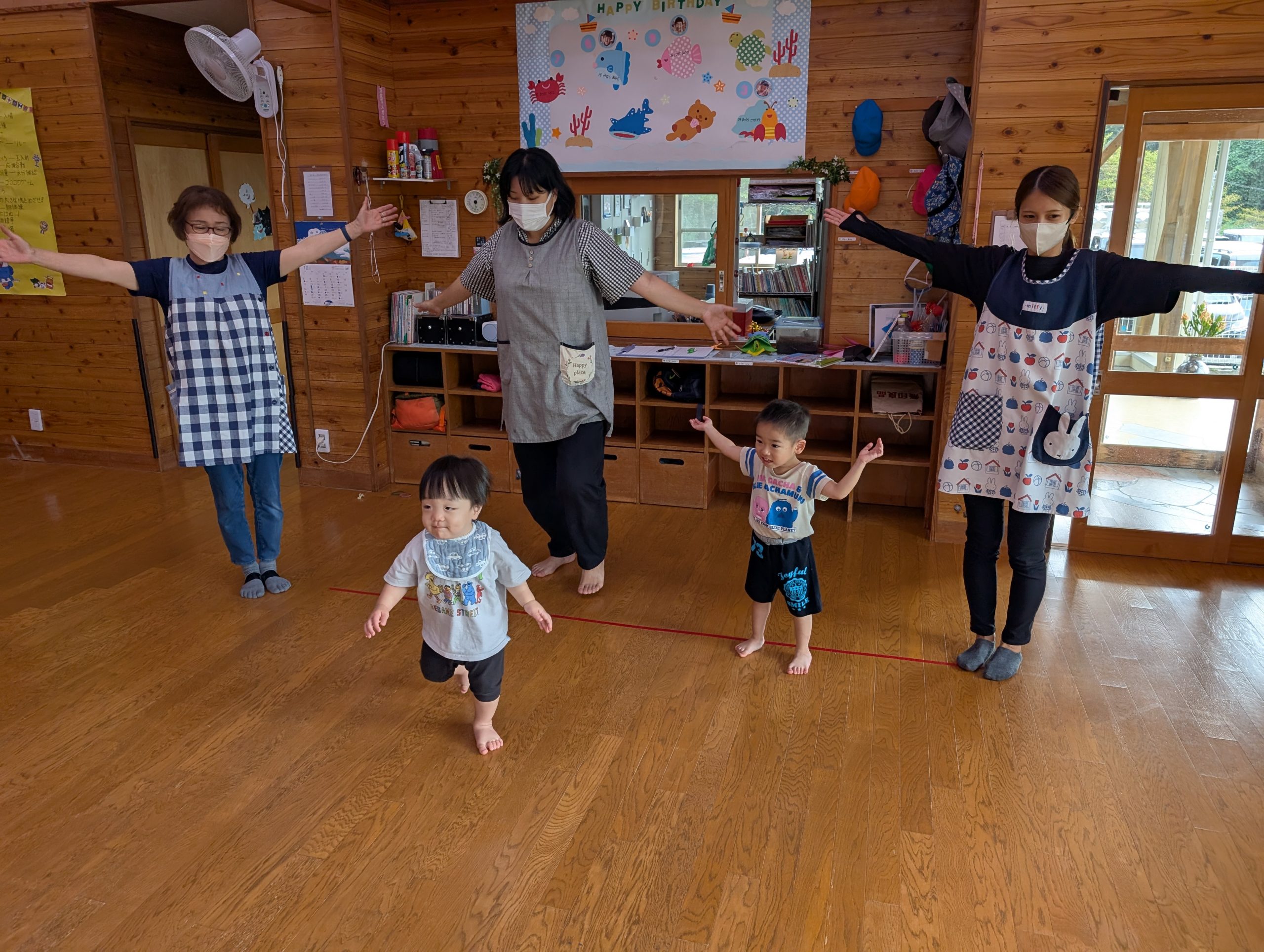 お月見運動会 【行 事】2025.10.07 10月6日は中秋の名月でした。 託児所では、お月見運動会が開催されました。 子どもたちがお団子になり、いろいろと形を変えながらリレーや玉入れなどをしました。 楽しいお月見と運動会になりました。