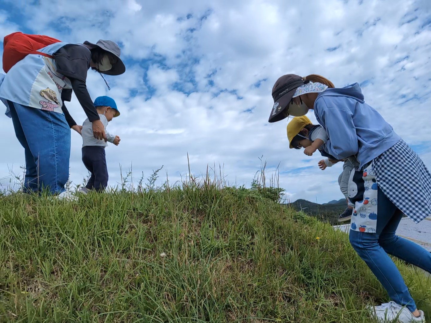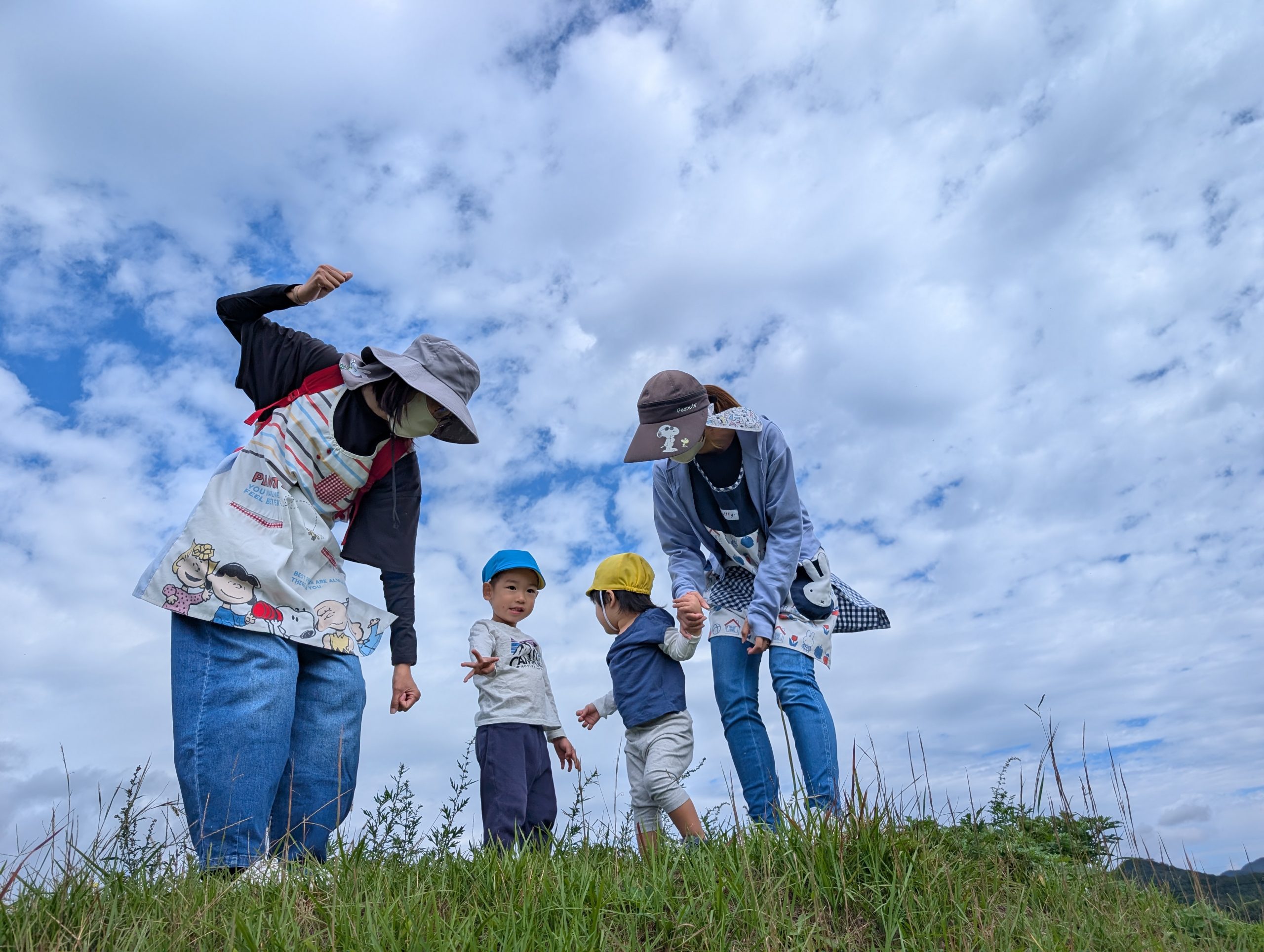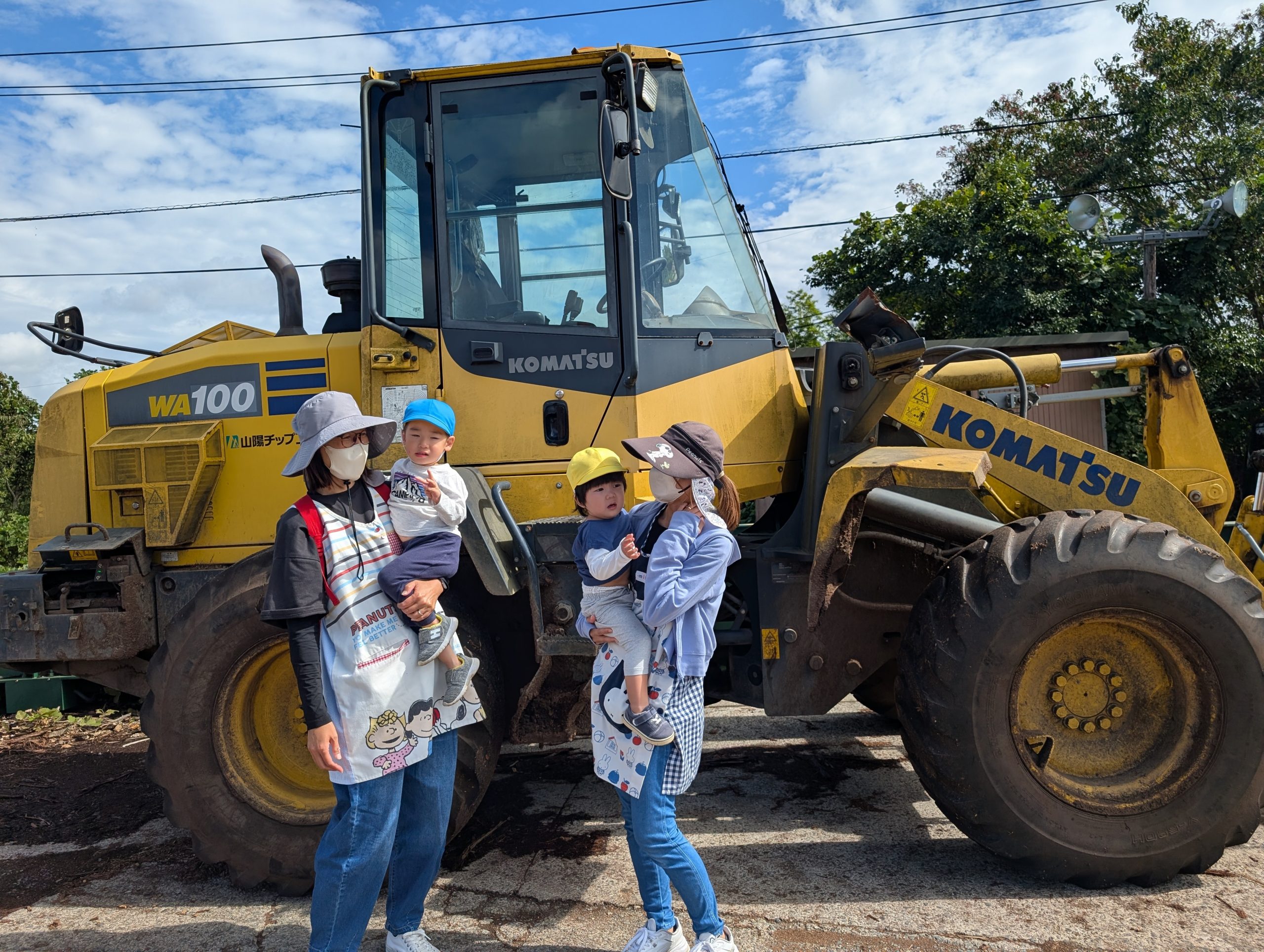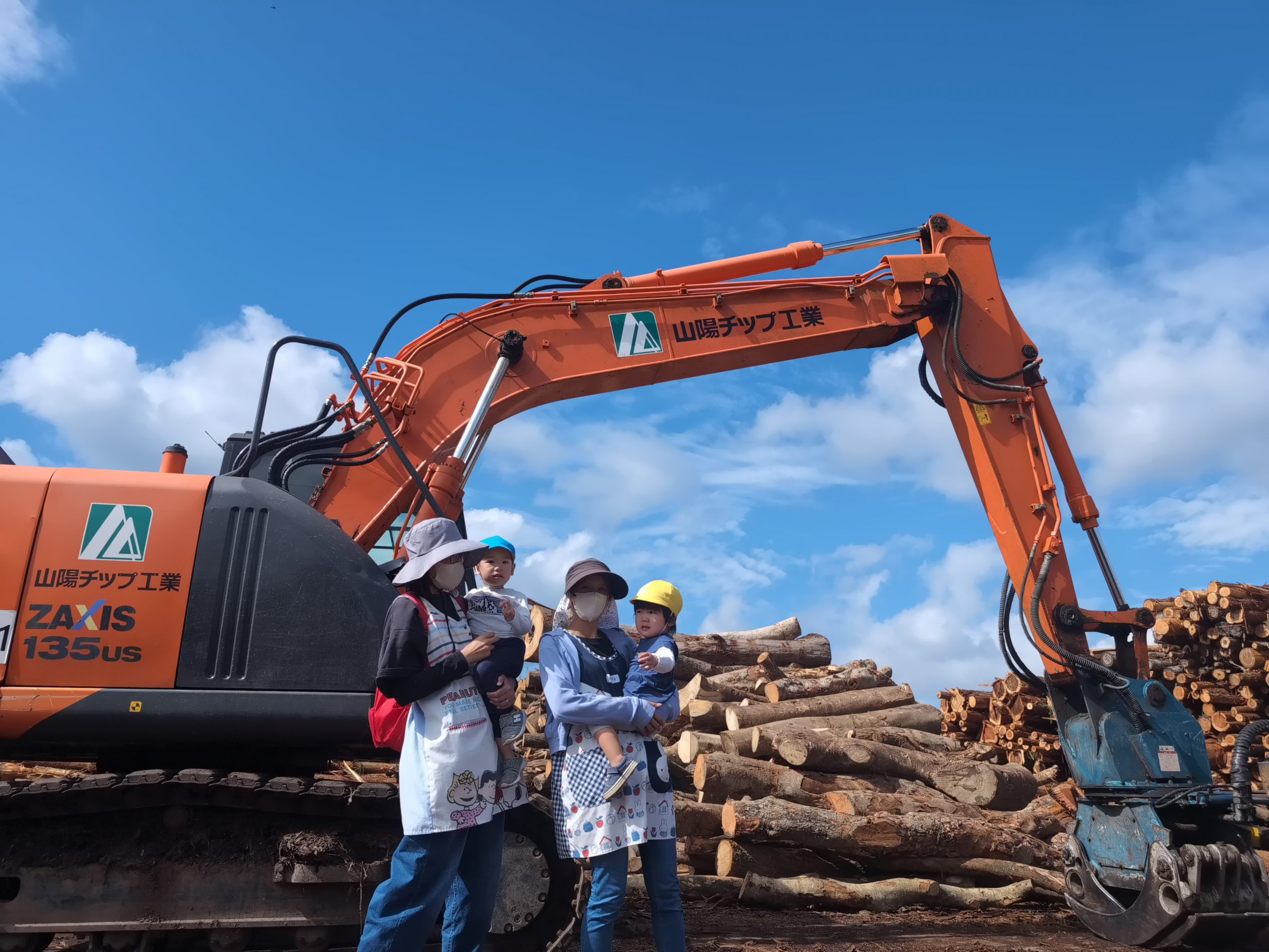 ハイキングへ行ってきました。 【行 事】2025.10.22 日を追うごとに秋が深まってきました。 そんな中、託児所ではハイキングへ行きました。 落ち葉を見て秋を感じたり、重機を近くで見て子どもたちは大喜びでした。