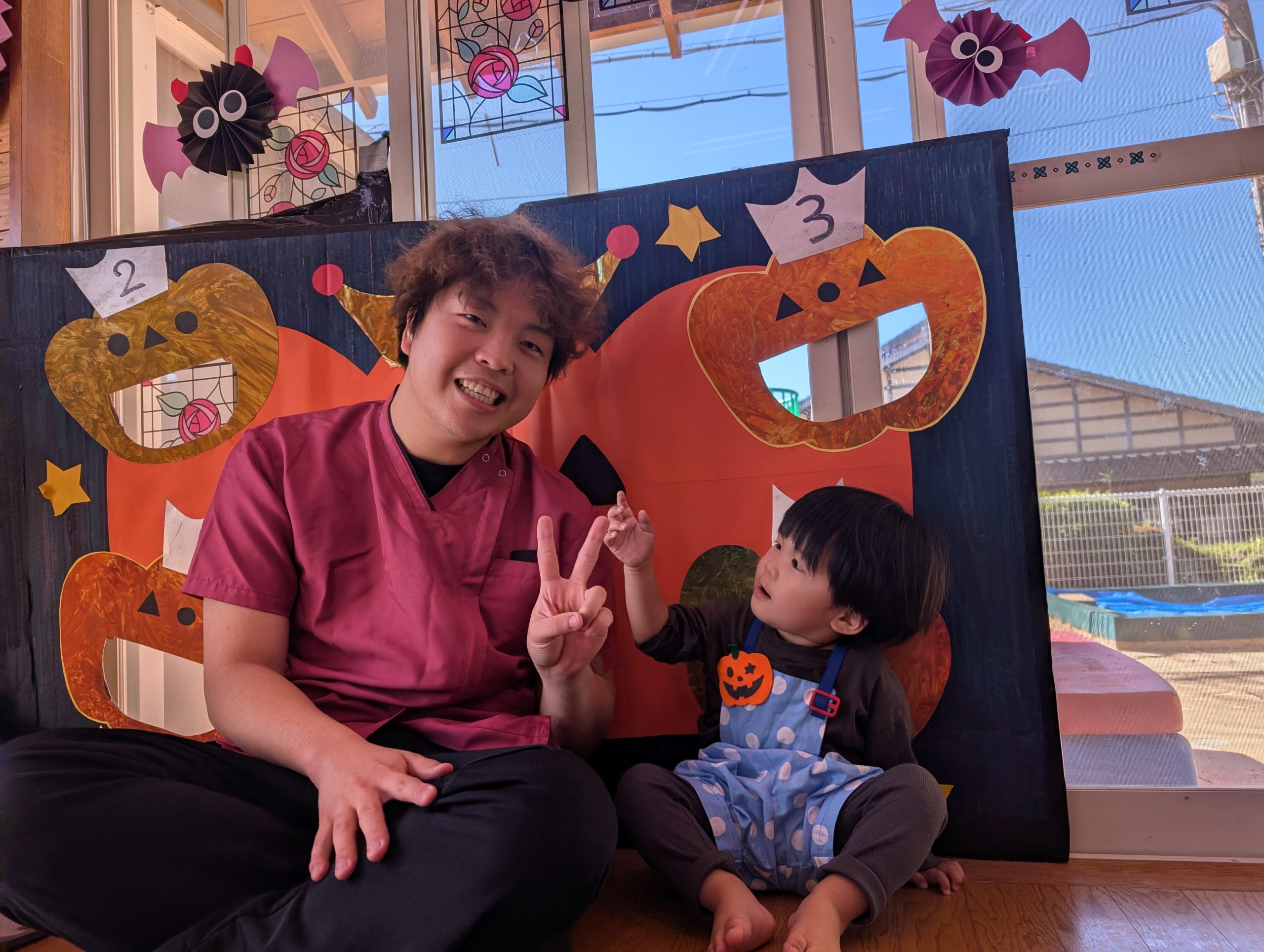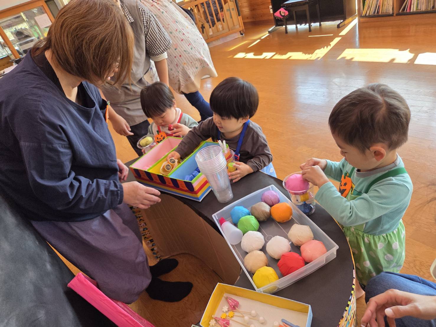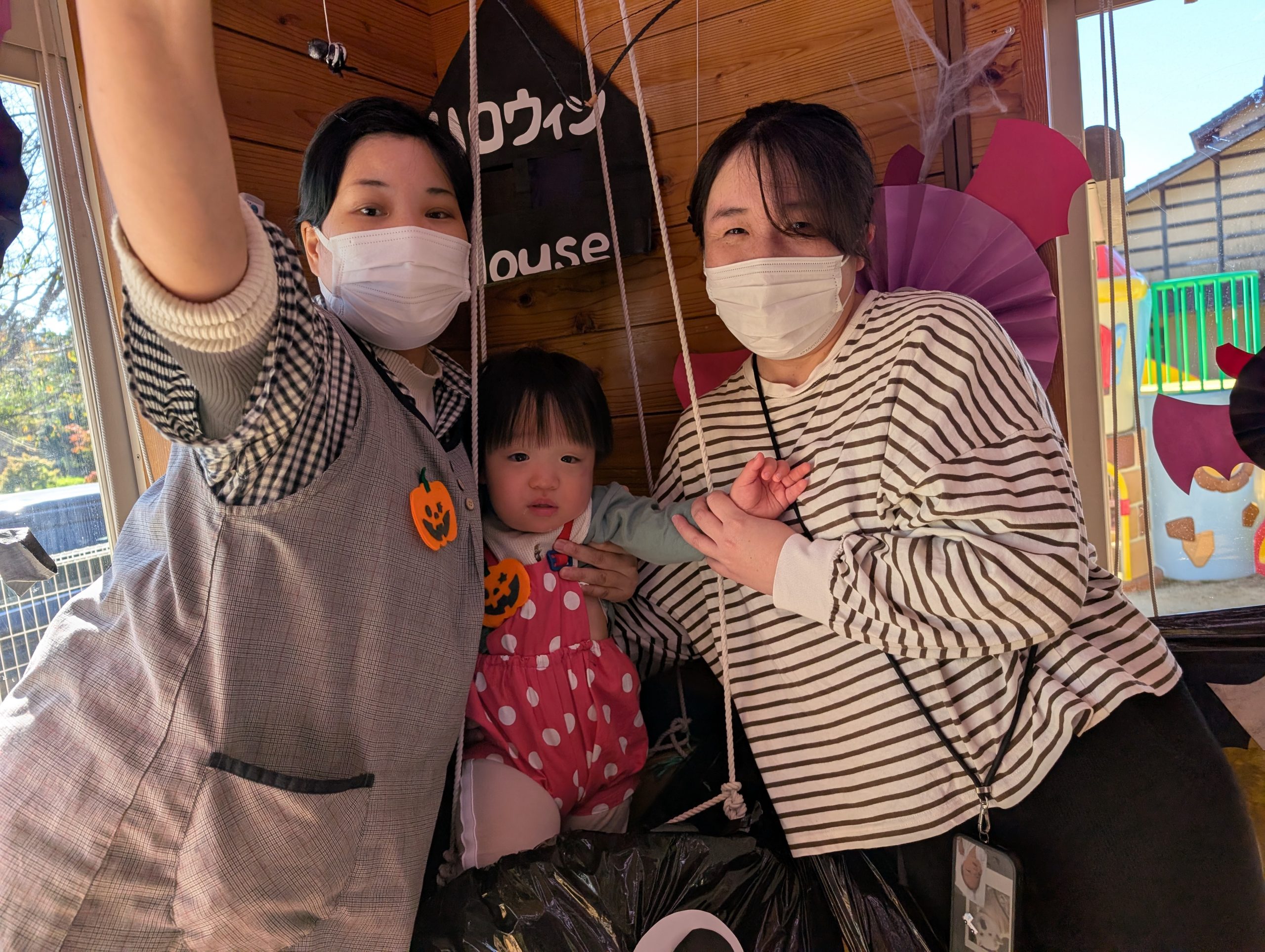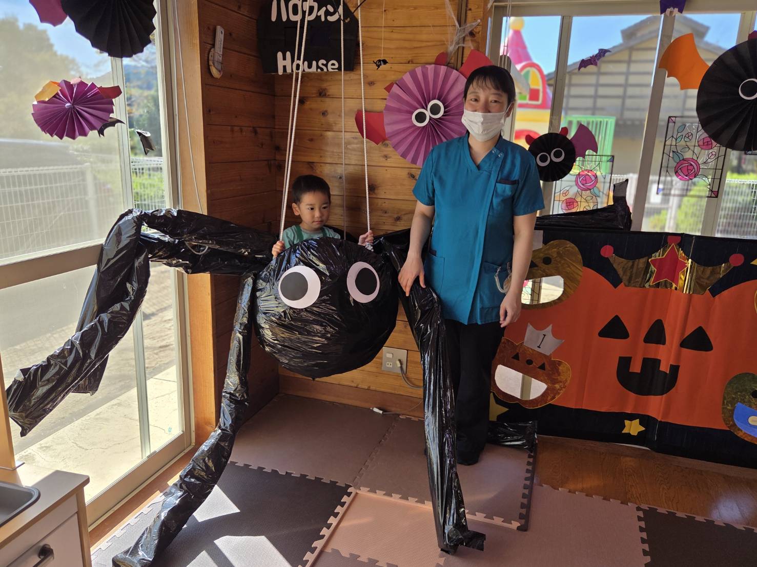 ハロウィン 【行 事】2025.10.31 今日はハロウィンです。 託児所でもハロウィンイベントが開催されました。 今年のテーマは「ハロウィン商店街」ということで、託児所内にいろんなお店が出現しました。 『ミュージックショップ魔女っこ』では音符オバケをやっつけたり、『フォトスタジオくも』では悪いこうもりを写真に閉じ込めました。 今回はお父さん・お母さんも参加して親睦会もしました。