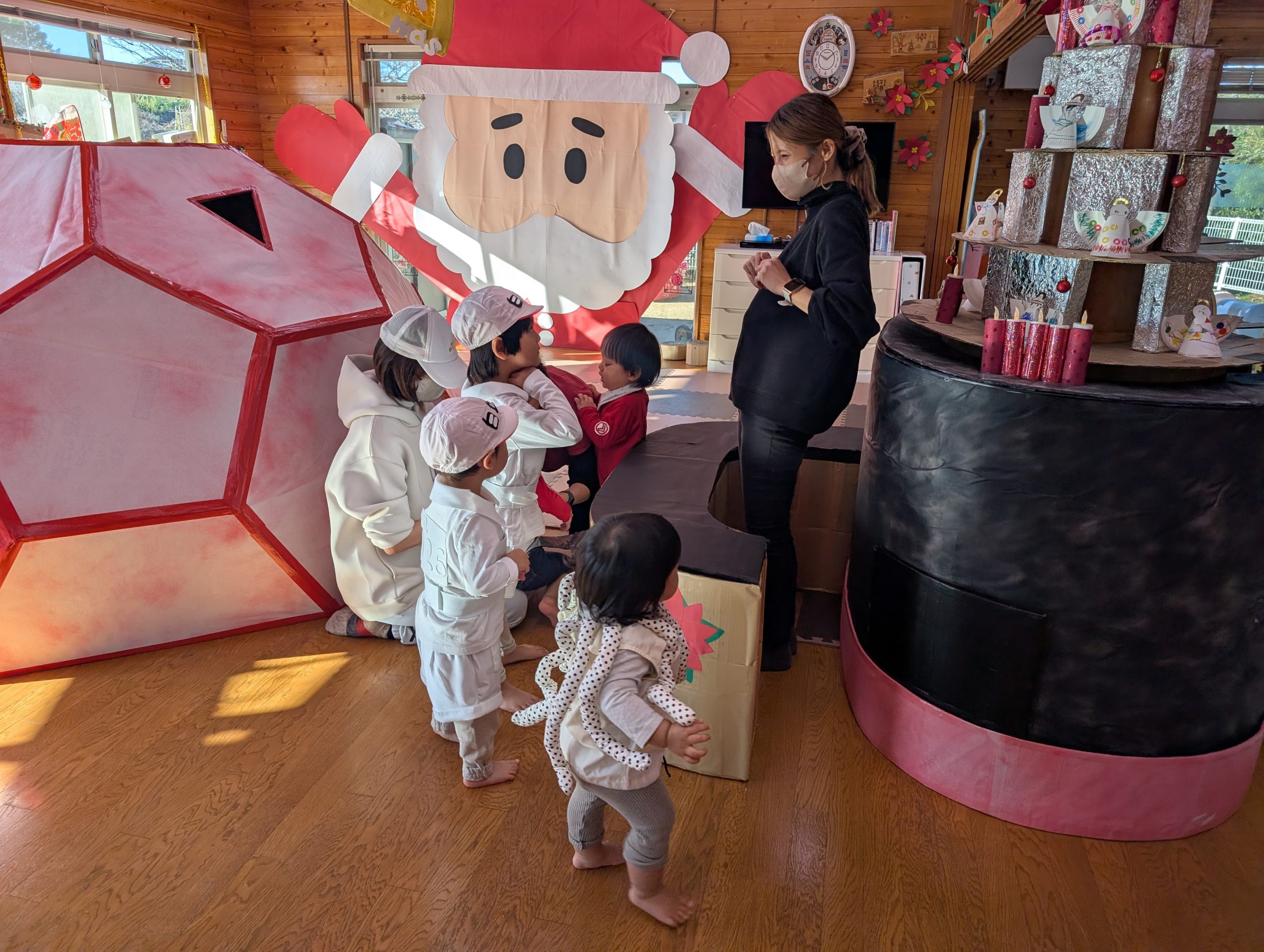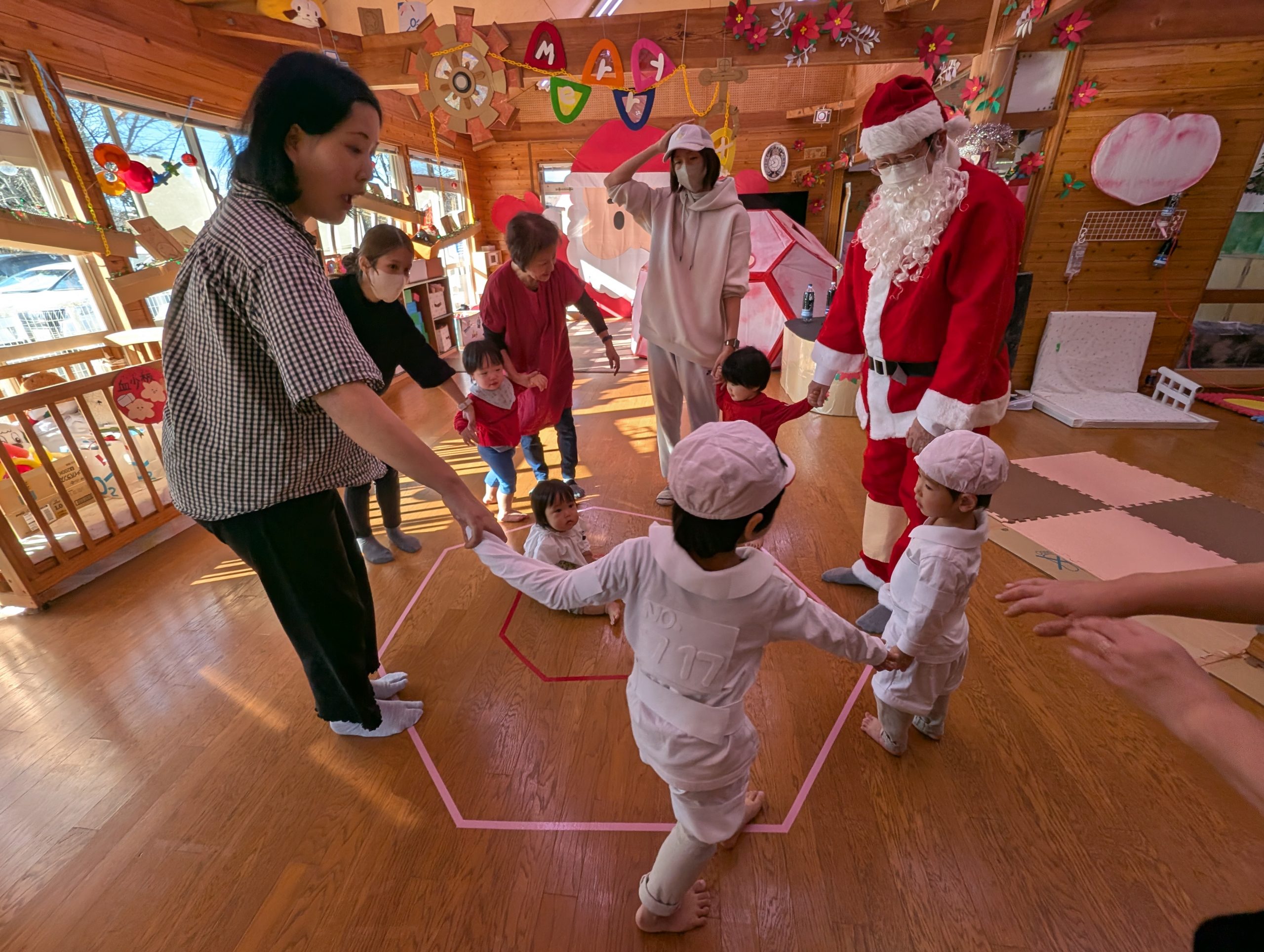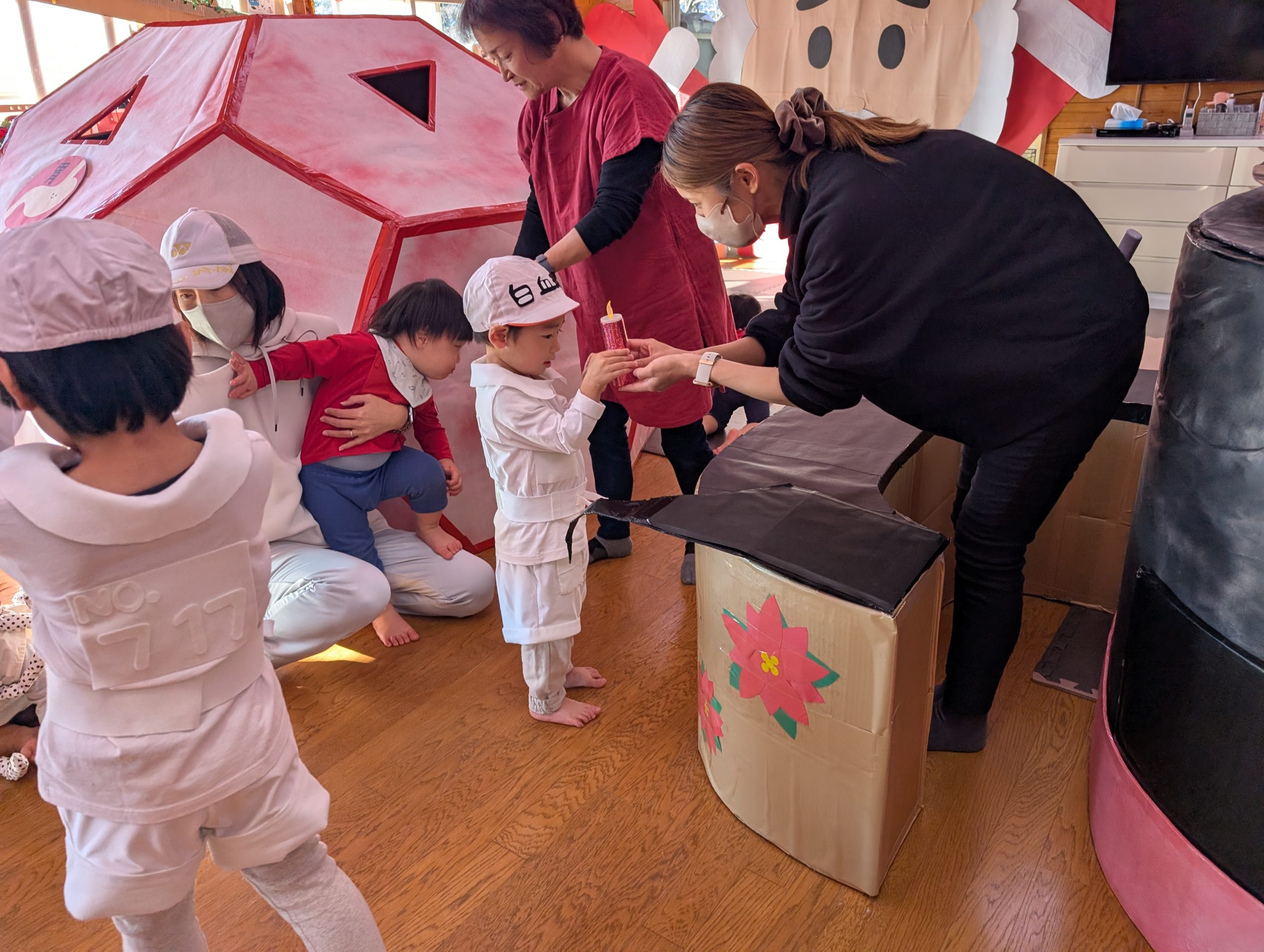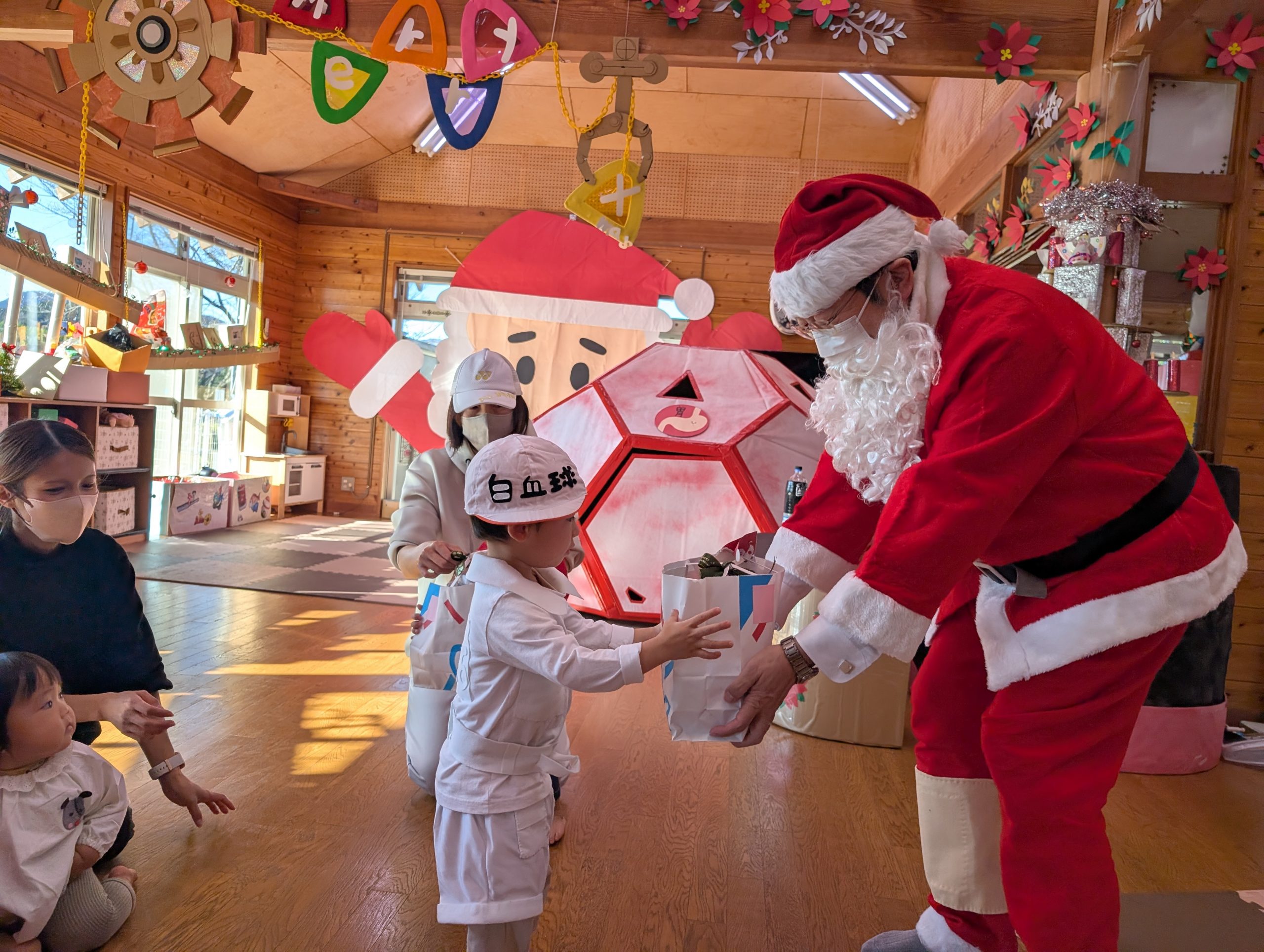 クリスマス会 【行 事】2025.12.26 早いもので今年もあとわずかとなりました。 そんな中、託児所ではクリスマス会がありました。 今回のテーマは、漫画『はたらく細胞』。 子どもたちが細胞に扮し、サンタクロースも参加して楽しいクリスマスを過ごすことができました。